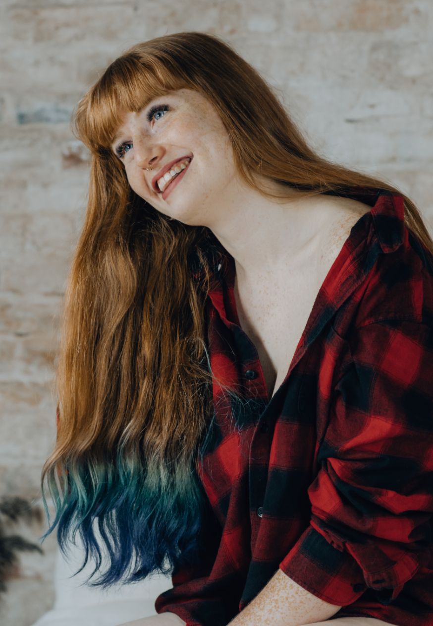 What hair dye colour & style would you like to model (examples: Cute pink highlights, Brave money piece, Dramatic & Loved dipdye)?